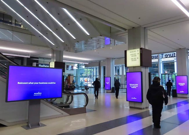 Electrosonic was brought in by Nanolmens to support Clear Channel Outdoor’s new digital advertising program, designed to reach Chicago’s commuters and visitors. The project included the installation of 42 strategically placed digital advertising displays, delivering over 20 million monthly impressions. The impressive audiovisual (AV) installation features massive, suspended LED video walls above stairwells, 75-inch vertical displays on columns and other digital signage. These vibrant AV displays enhance the visual experience of the space while integrating seamlessly with the building’s modern architecture.