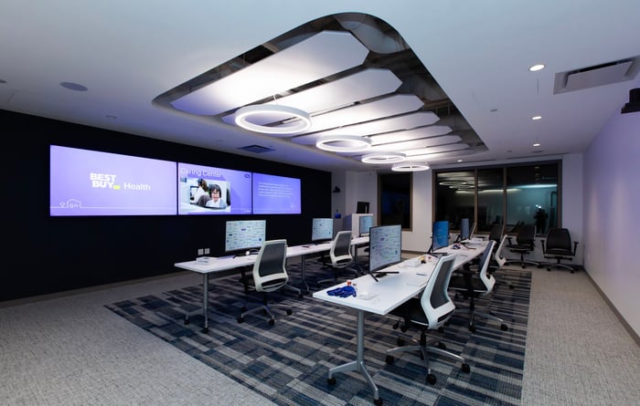 Visitors enter an immersive room where they can view a large 13x7.4-foot Unilumin LED video wall and QSC speaker that communicate Best Buy Health’s innovative solutions and services for ‘bringing health home’ with the next generation of remote healthcare.