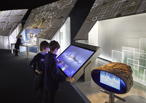 The immersive exhibition tells the history of radio astronomy and its impact on knowledge of the universe through video, audio, complex projection mapping, multi-touch displays, special effects and interactive exhibits that trigger content projected onto a ‘Radio Sky’. The exhibition also celebrates the pioneering work of Sir Bernard Lovell who developed the world’s first radio telescope, using actual sections of his original telescope as major elements of the whole exhibition structure and creative projection surfaces.