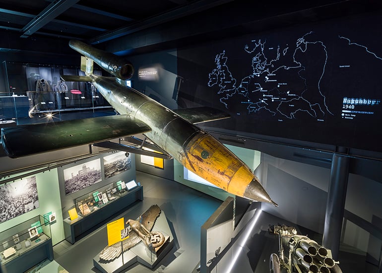 The Second World War Gallery, designed by Ralph Appelbaum Associates (RAA) and Holocaust Gallery designed by Casson Mann constitute over 3000 meters of exhibit space and feature extensive audiovisual displays, film footage, 360⁰ soundscapes and interactive exhibits that complement thousands of artifacts and personal stories.