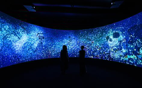 At the heart of this 18,000-square-foot space is the Discovery Showcase - the world’s first large-scale curved LED wall with infrared, multi-touch technology. Surrounding it, a transparent LED wall adds depth, and a 7-section LED lighting display frames the space.